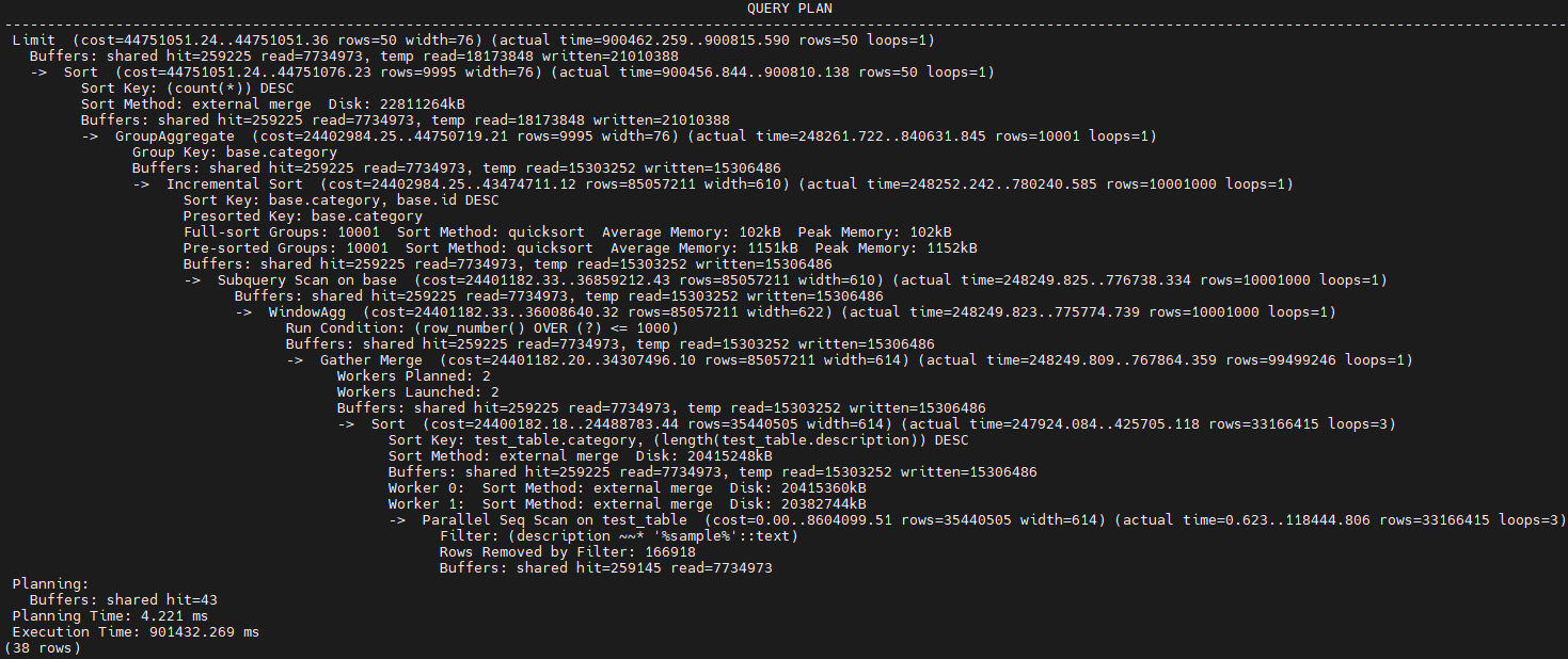 Sort (LIMIT 50) ... external merge, Disk: 22GB