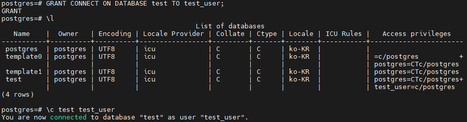 ※ PostgreSQL: Configuring Database-Level Access Privileges.