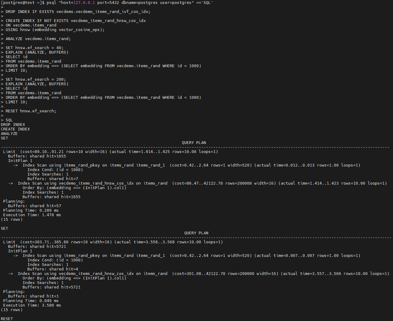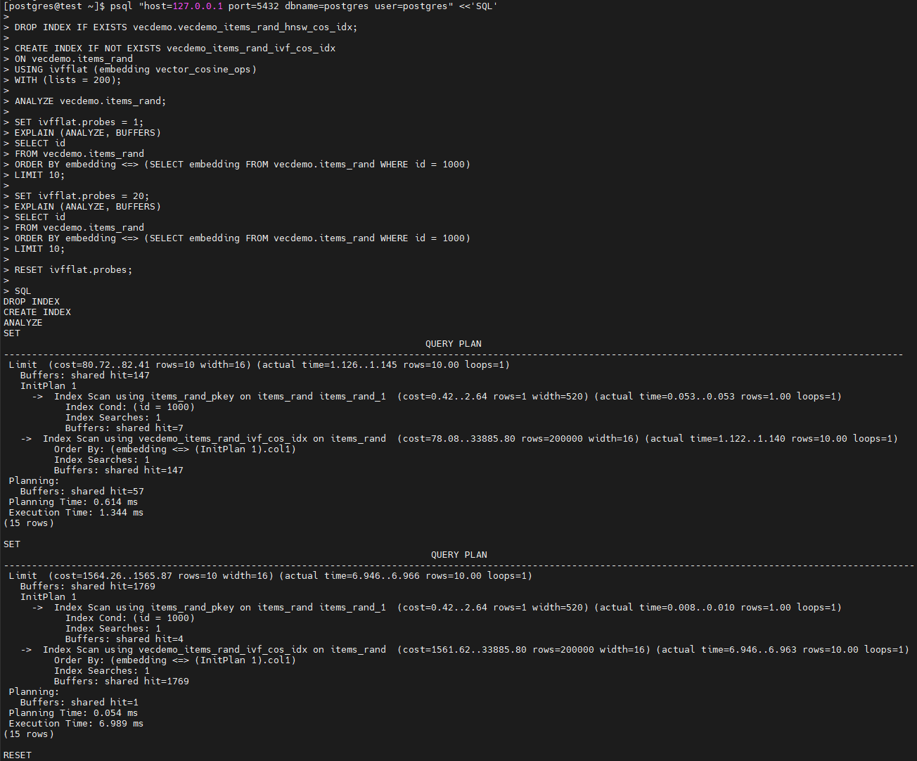 - benchmark vector indexes (HNSW vs IVFFlat).