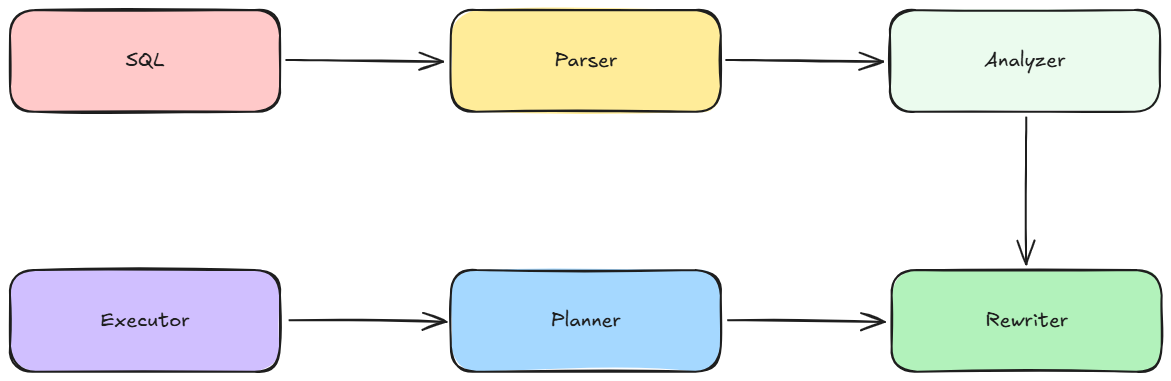 | 역할 | RULE 기반으로 VIEW 확장, INSTEAD RULE 적용 등 구조 변경만 수행 |