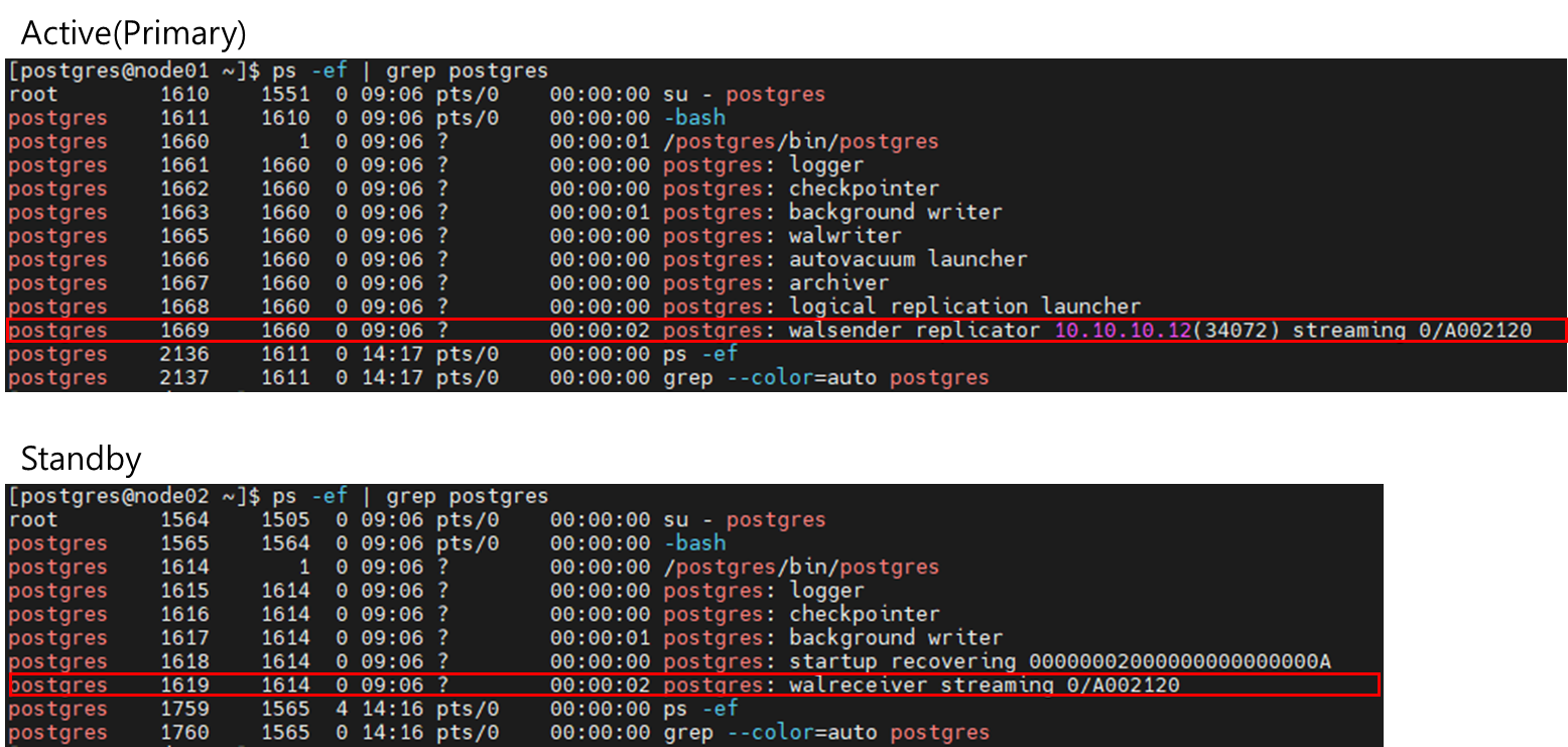 • 두 서버에 설치된 PostgreSQL 버전은 반드시 동일해야 합니다.