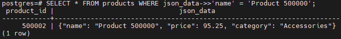 WHERE json_data->>'name' = 'Product 500000';